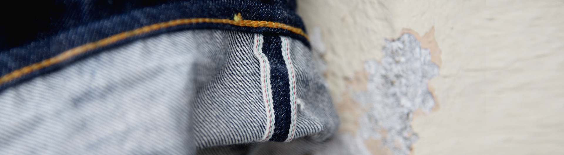 セールスマンジーンズは、文字通りダ・ルチザンのセールスマンが、数種類あるダ・ルチザンの定番ジーンズの生地の魅力を「1本のジーンズで、しかも穿きながらにして説明する」という突拍子もないコンセプトのもと組み上げられたジーンズです。