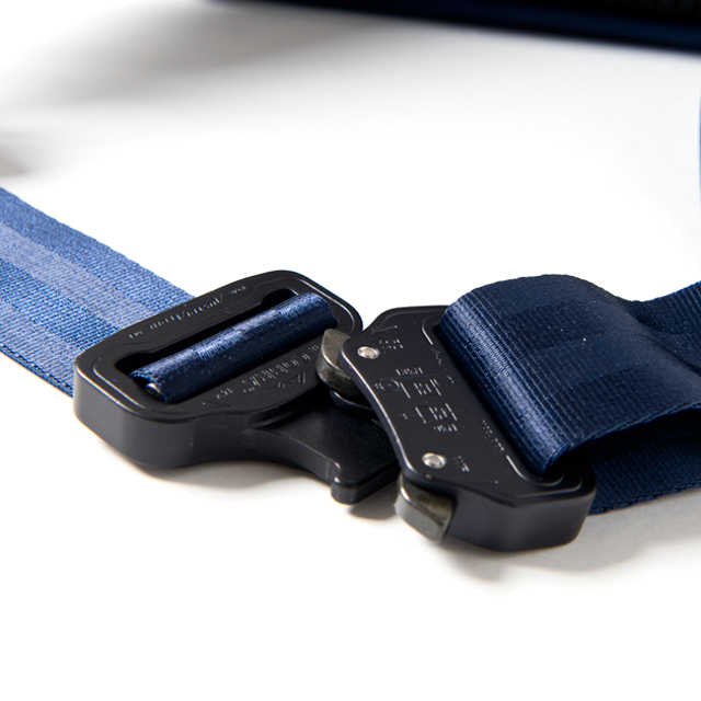 パラシュートの部品や、登山、軍隊装備として使われており、ワンタッチでのロック、解除ができるバックルで、オーバースペックな理由は塩水、風塵、砂などにも影響を受けない高い耐久性と