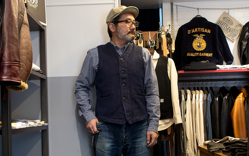 D4523 KAKISHIBU DENIM HICKORY VEST 着用SIZE 38