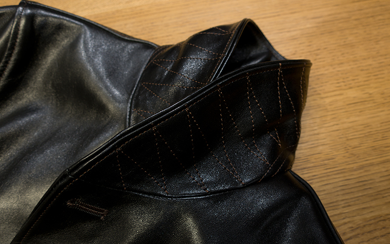 特徴的なShawl Collarの裏側には、ZigzagのDiamond Stitchが。