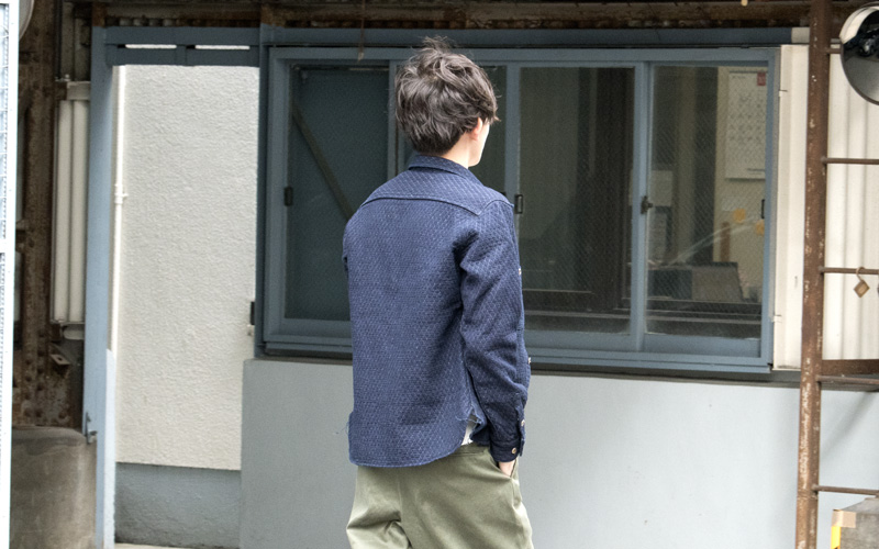 表面はインディゴキルト仕様になっており、凹凸のある生地は着込むと雰囲気バツグンの経年変化を楽しんで頂けますよ。