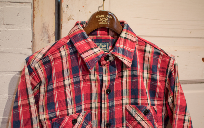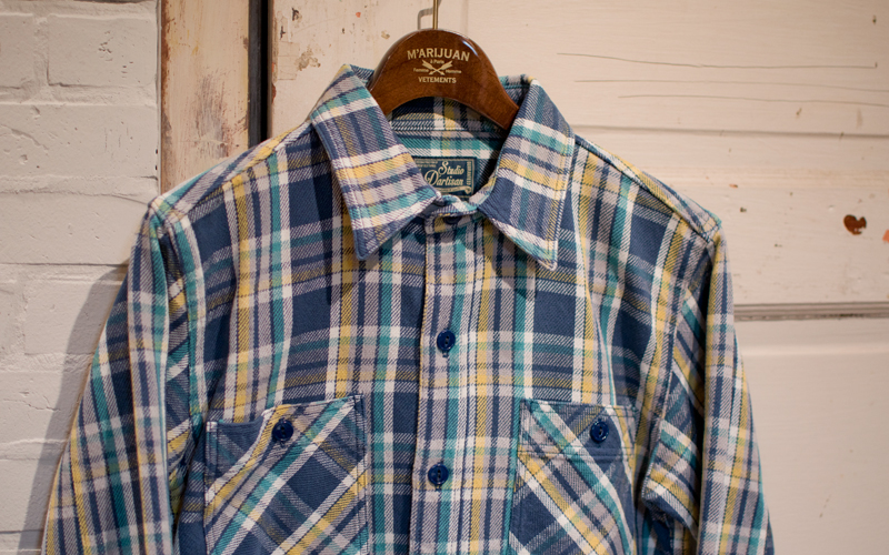 上記のネルシャツよりもさらに度詰めされ、がっしりとした生地感となったヘビーネルに、