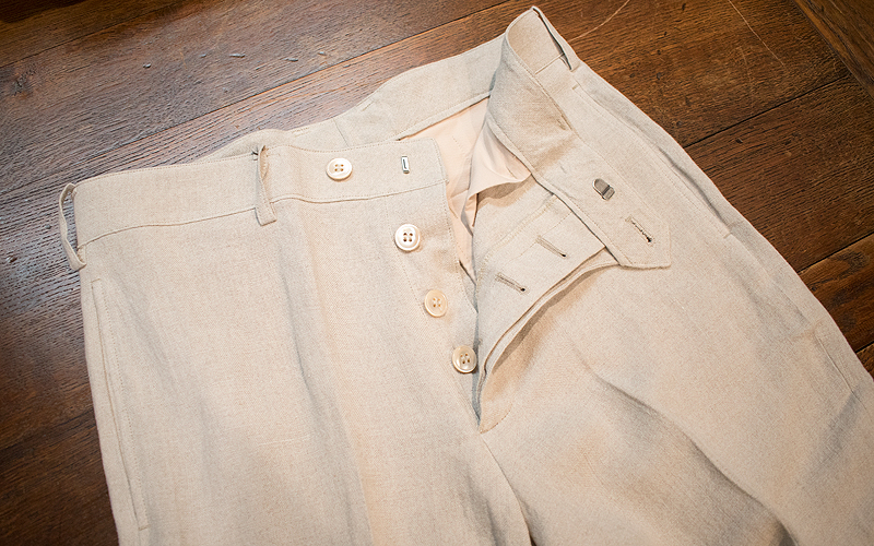 片やTROUSERSの方は、FRONT SIDEのWHITE PEARL SHELL BUTTONや、