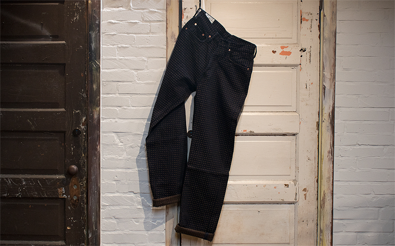 D’ARTISANからは、何だか久々、INDIGOと柿渋染めを組み合わせた刺し子JEANSが、