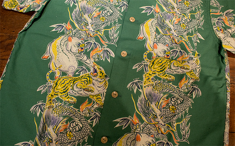 VINTAGE ALOHA SHIRTの柄で有名な「TORNADO TIGER」という柄を参考にしています。